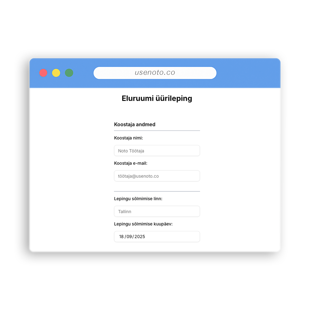 Koosta usaldusväärne üürileping minutitega - ilma kontota ja tasuta.- 1. Täida väljad
